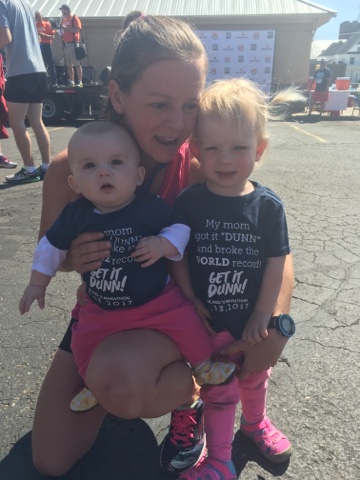 - World record 1/2 marathon pushing a double stroller! SO fun. Awesome race, the MOST AMAZING race director & community feel behind a race, and what an honor to be able to set a record with my two girls. They earned it just as much as I did.