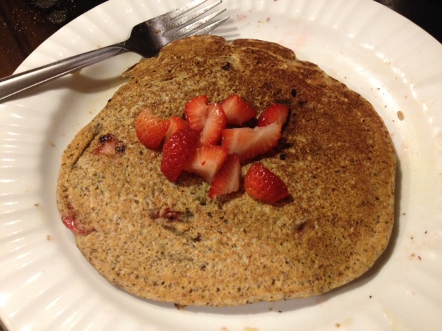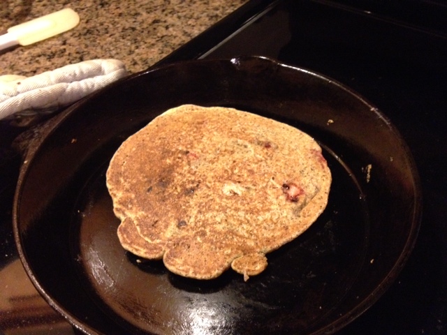 Mix together and cook like a normal pancake. Enjoy while hot off the pan. You can taste the different flour textures. SOOOO good!