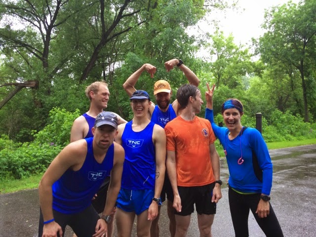 Amy (far right) doing a marathon tune-up workout in Northfield with a few other TNC athletes and friends. |